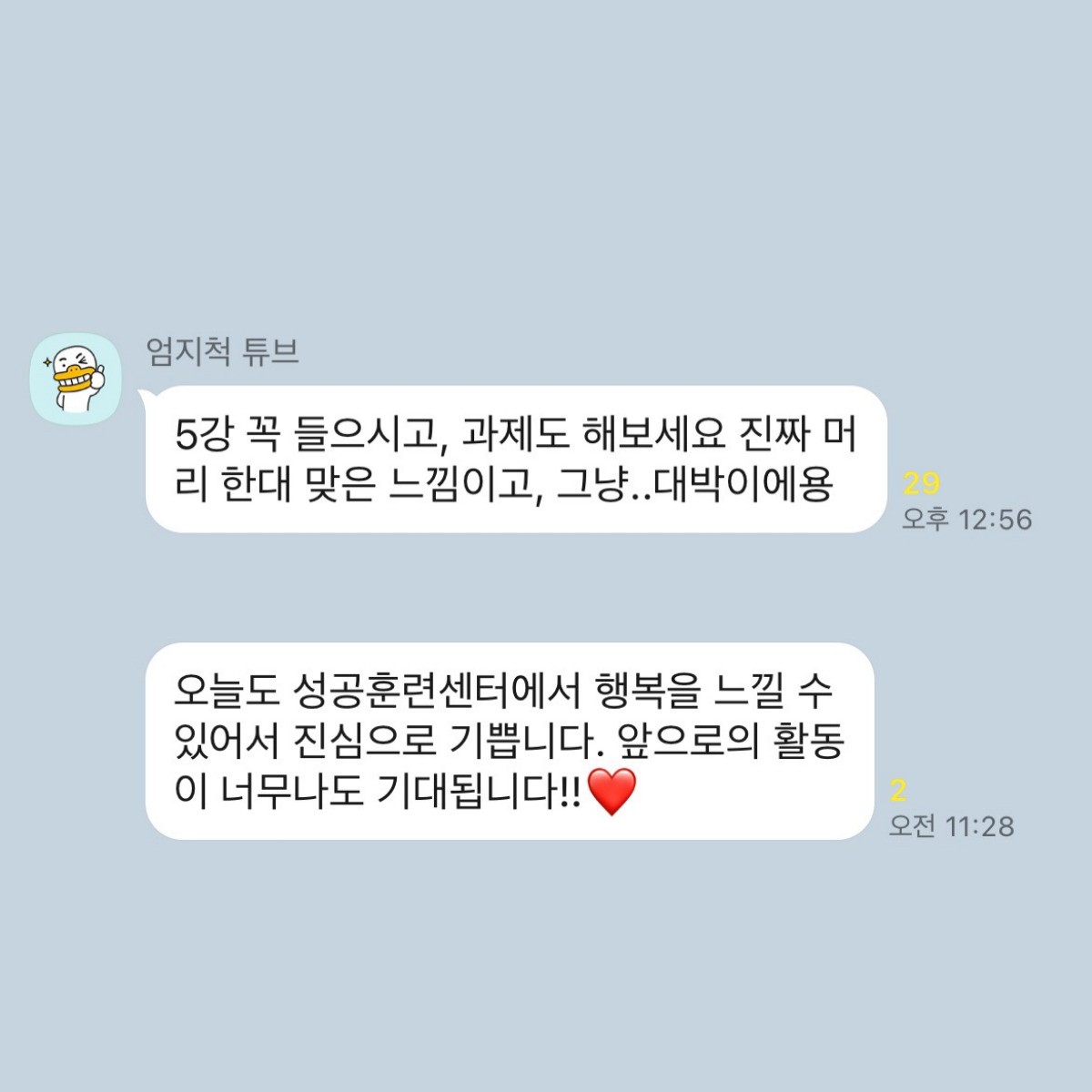 성공훈련센터 덕분에요. 진심으로 감사합니다.