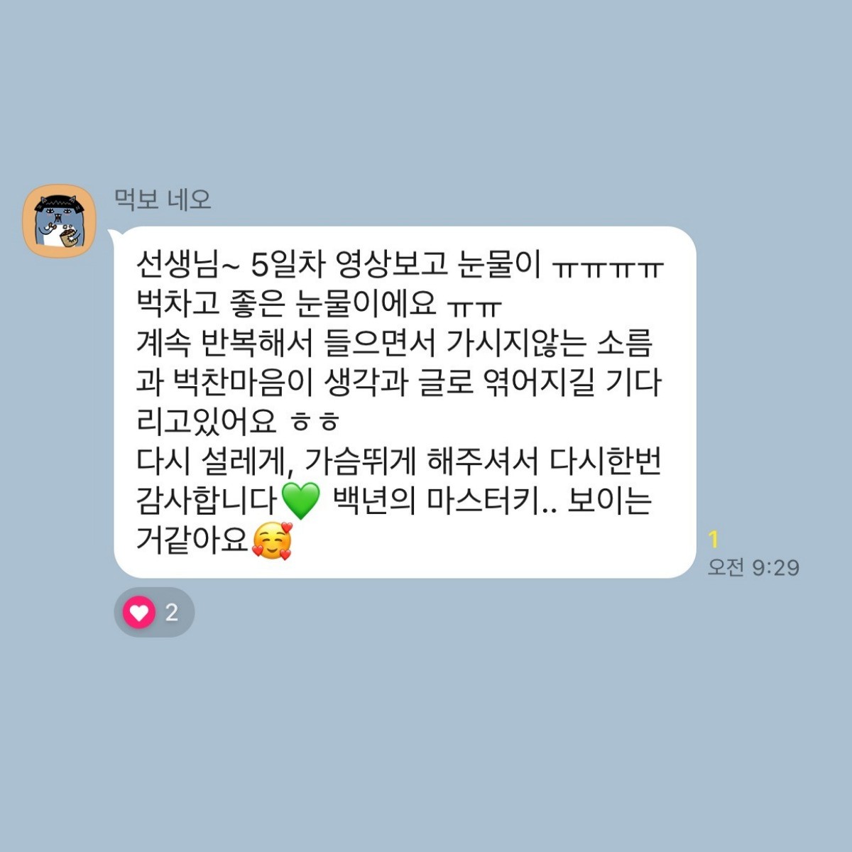 3n년동안 못 하던 일을 시작 한지 2일만에 2개월동안 물어오던 메시지의 의미를 딱 10일만에 마음을 움직이고, 나를 엮어내 미래가 더 가까이왔다. 세상에 가장 공평한건 단 하나 시간이다.